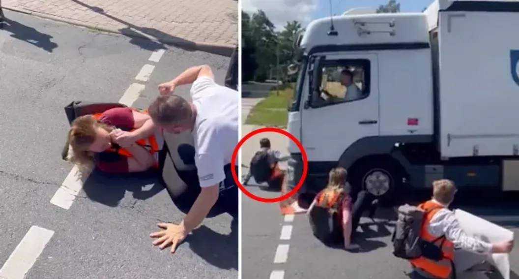 Na snimku koji je brzo počeo kružiti društvenim mrežama vidi se kako vozač (41) izlazi iz kamiona, a zatim jednog od demonstranata prisilno odvlači na stazu. I drugog je gurnuo na tlo te na njega krenuo šakom, a onda se vratio u vozilo.
