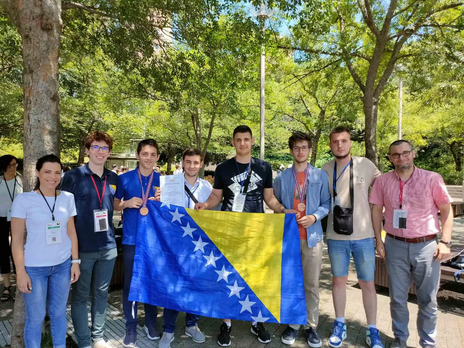 Pupin" Bijeljina, 3. razred) i Tarik Mujkić (Gimnazija "Rizah Odžečkić" Zavidovići, 4. razred), dok su voditelji ekipe bili doc. dr. Benjamin Fetić sa Prirodno-matematičkog fakulteta u Sarajevu i Fatih Žgalj, student prve godine Odsjeka za fiziku Prirodno-matematičkog fakulteta u Sarajevu i nekadašnji olimpijac.