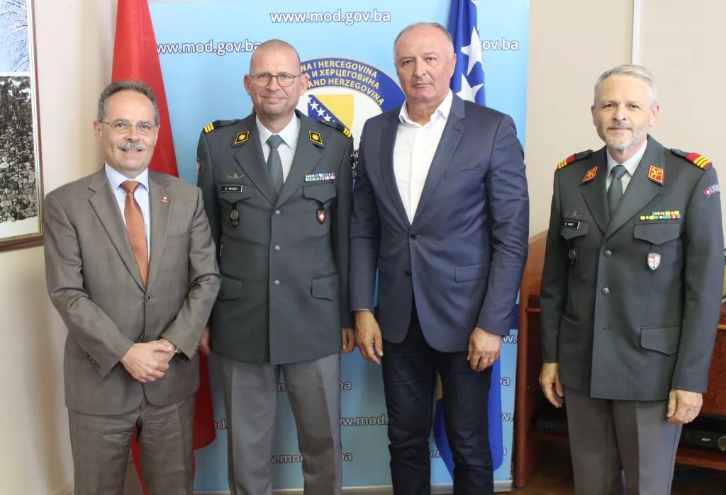 Sagovornici su razgovarali o bilateralnoj vojnoj saradnji Bosne i Hercegovine i Švicarske Konfederacije, a sastanku su prisustovali i šef Kabineta ministra odbrane BiH Salko Beba, kao i dosadašnji nerezidenti švicarski vojni izaslanik brigadir Urs Amiet.