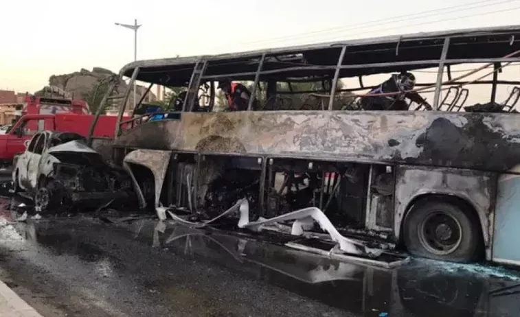 #Tamanrasset #Algeria🇩🇿- At least 34 people killed and 12 wounded in fire blaze from collision between a commercial vehicle and a passenger bus on National Road No. 01 in #Otoul village; Directorate General for Protection and National Gendarmerie have said pic.twitter.com/qKf5gycfKa