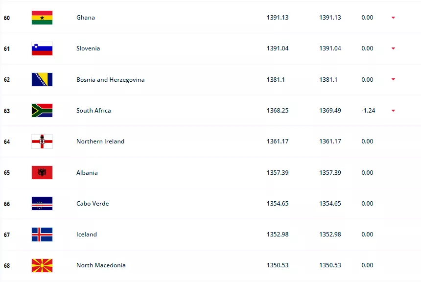 (Patria) - Fudbalska A reprezentacija Bosne i Hercegovine zauzima 62. mjesto na listi najboljih svjetskih reprezentacija, koju je danas ažurirala FIFA.