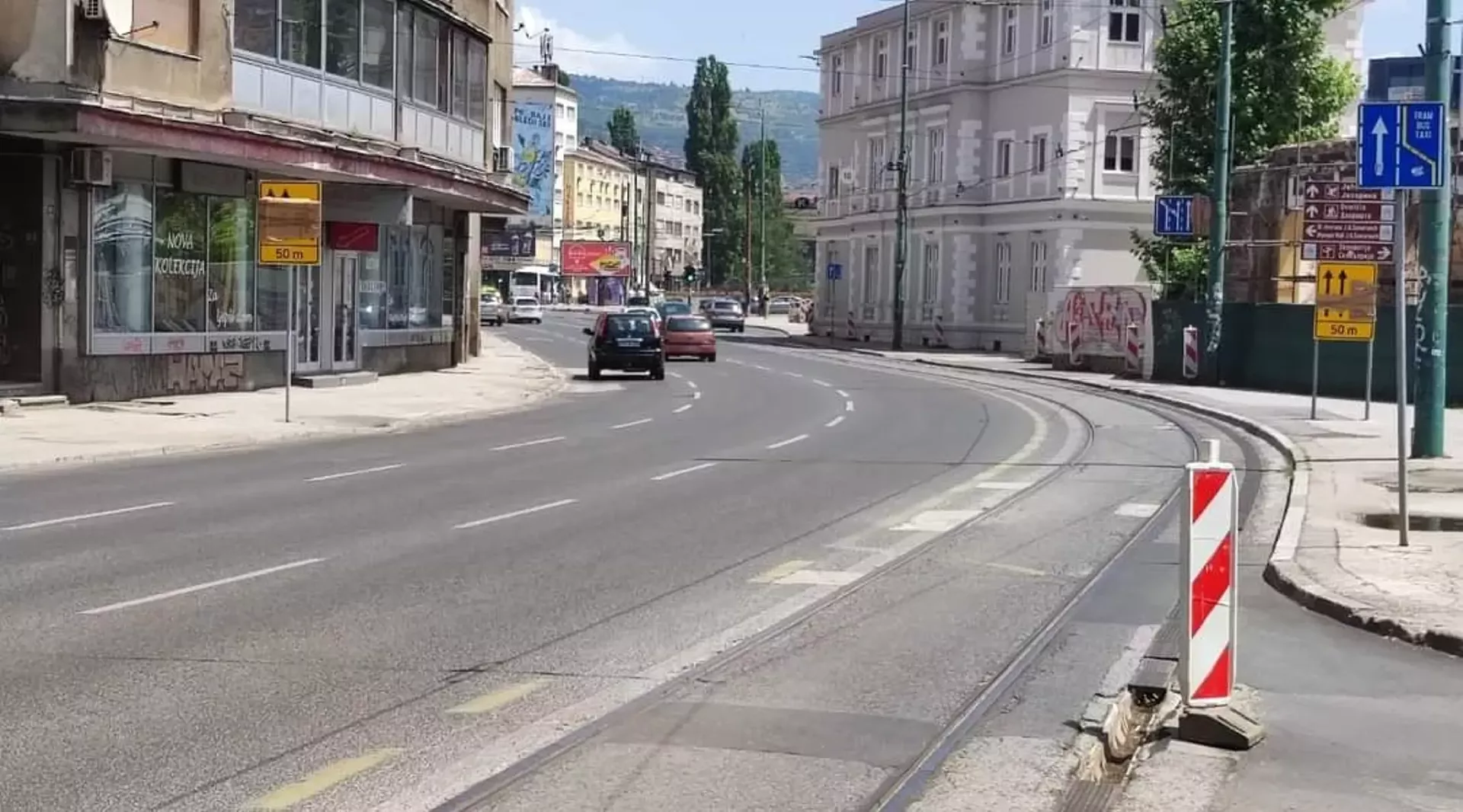 U periodu izvođenja radova sa glavne saobraćajnice iz ulice Hiseta neće se moći skrenuti desno prema KJP Centar Skenderija, niti voziti saobraćajnom trakom na kojoj se nalaze šine i jednom saobraćajnom trakom za kretanje pravo prema Baščaršiji.
