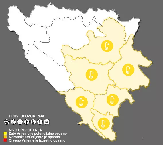 U Sarajevu sunčano uz malu do umjerenu oblačnost. Tokom poslijepodneva su mogući lokalni pljuskovi i grmljavina. Jutarnja temperatura oko 20, a dnevna oko 33 °C, kažu iz Federalnog meteorološkog zavoda.