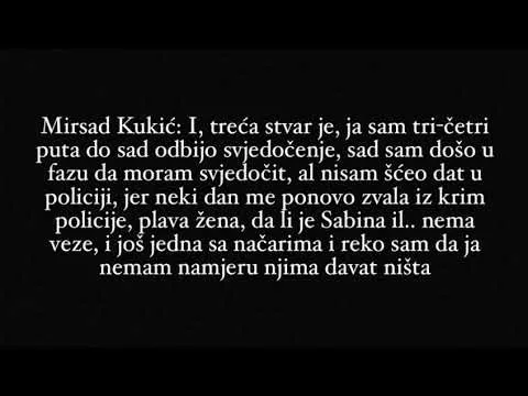 “Ja sam mislio da ti realno imaš nekoga, neku vrstu zaštite, i boli me k… tvoje je da radiš posao i mislim da trebamo na tu temu porazgovarati. Do tebe je ako hoćeš da pričamo, ako nećeš nije nikakav problem, jer sva ova kretanja koja idu, koliko vidiš, koliko ne vidiš. Ja sam tri-četiri puta do sada odbijao svjedočenje, sad sam došao u fazu da moram svjedočiti, ali nisam htio dati u policiji, jer neki dan me ponovo zvala iz krim policije, plava žena, da li je Sabina ili… nema veze. I rekao sam im da ja nemam namjeru njima davati ništa. Onda ćeš, kaže, tužiocu davati. Rekoh, davat ću tužiocu da znamo ko laže ko ne laže, da vidimo kome se može vjerovati i na kraju je takav zapisnik napravljen kod ove žene plave”, kazao je Kukić, priznavši da je po nekim pitanjima već bio sa tom inspektoricom.