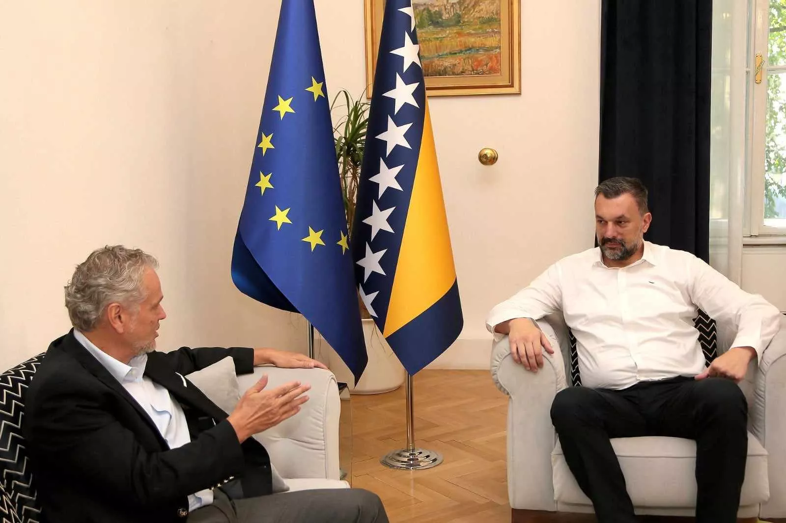 (Patria) - Šef Delegacije EU Johann Sattler danas je održao sastanak sa ministrom vanjskih poslova BiH Elmedinom Konakovićem kojeg je posjetio u zgradi Ministarstva.