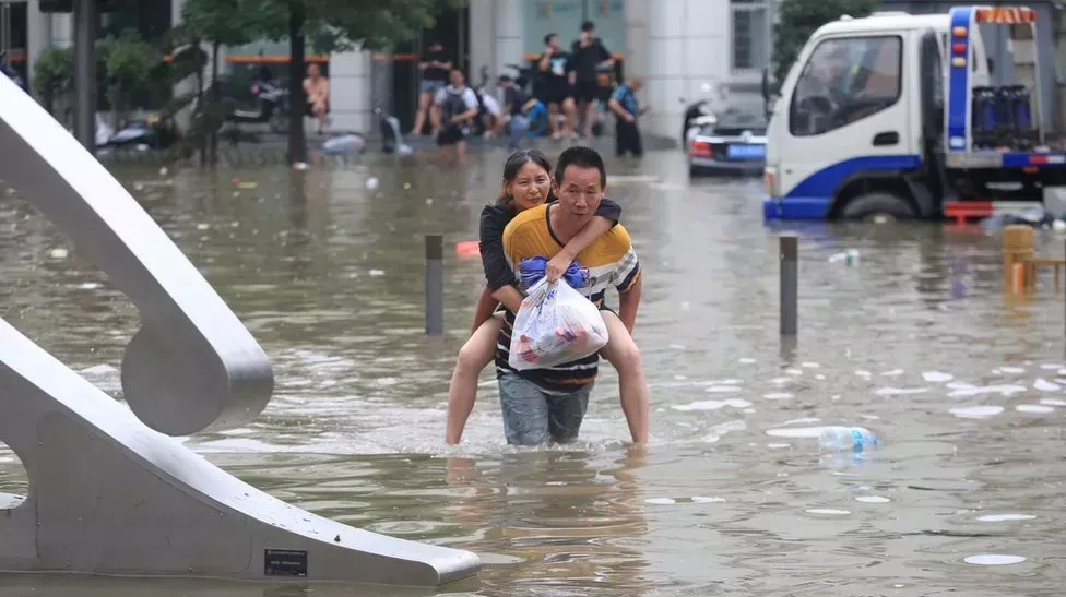 Peking obično ima suha ljeta, ali je ove godine imao period rekordnih vrućina koje su se dramatično smanjile tokom vikenda sa skoro sedmicom konstantne kiše i kiše. U područjima je nestalo struje, javni prevoz i ljetnja nastava su obustavljeni, a građanima metropole sa više od 20 miliona ljudi rečeno je da ostanu kod kuće.