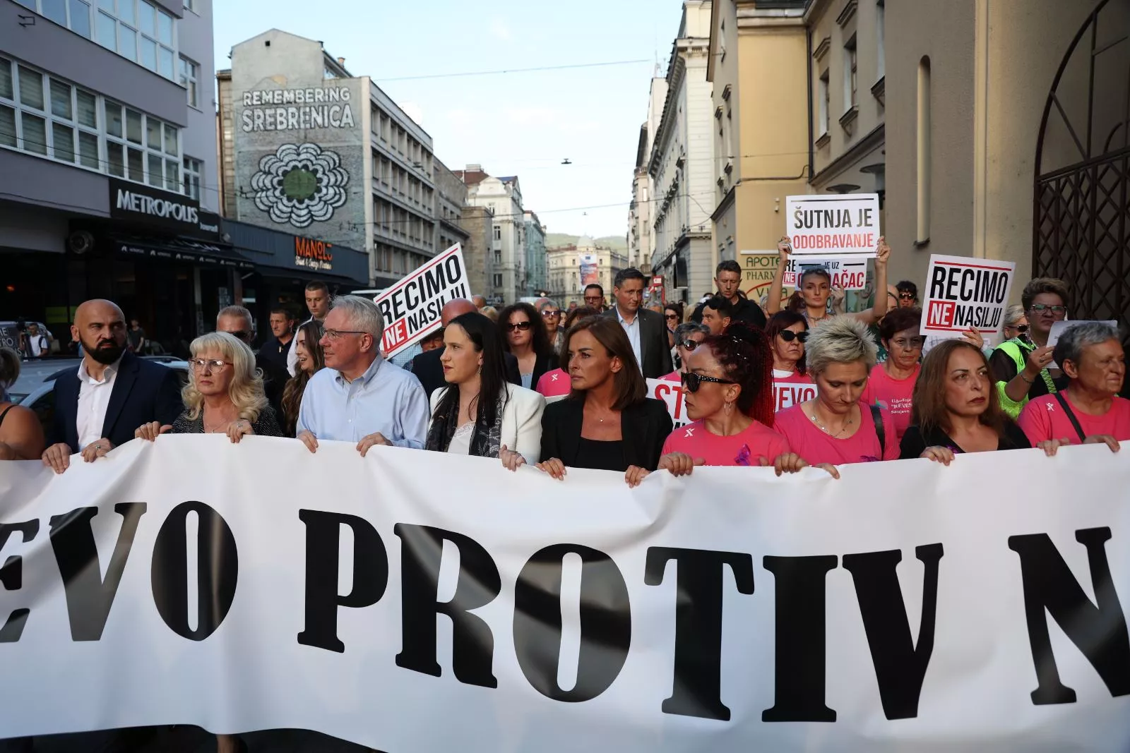 Ona je iščitala zahtjeve upućene vlastima BiH, te su okupljeni krenuli u protestnu šetnju prema Aria centru.