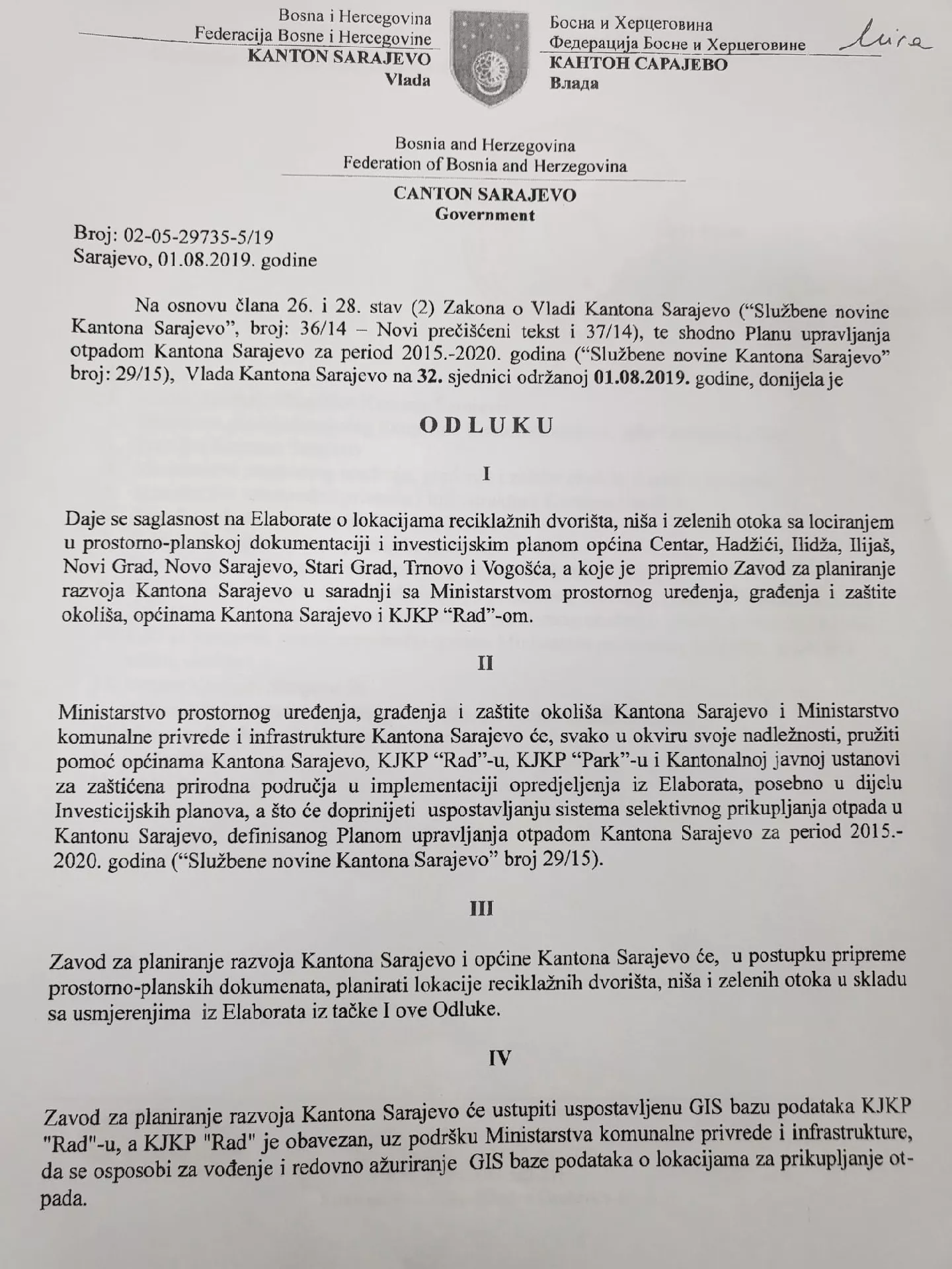 Iz Općine Centra kažu da na ovaj način ispunjavaju obavezu koja je općinama u Kantonu Sarajevo propisana Elaboratom o lokacijama reciklažnih dvorišta, niša i zelenih otoka, na koji je Vlada Kantona Sarajevo svojom odlukom dala saglasnost.