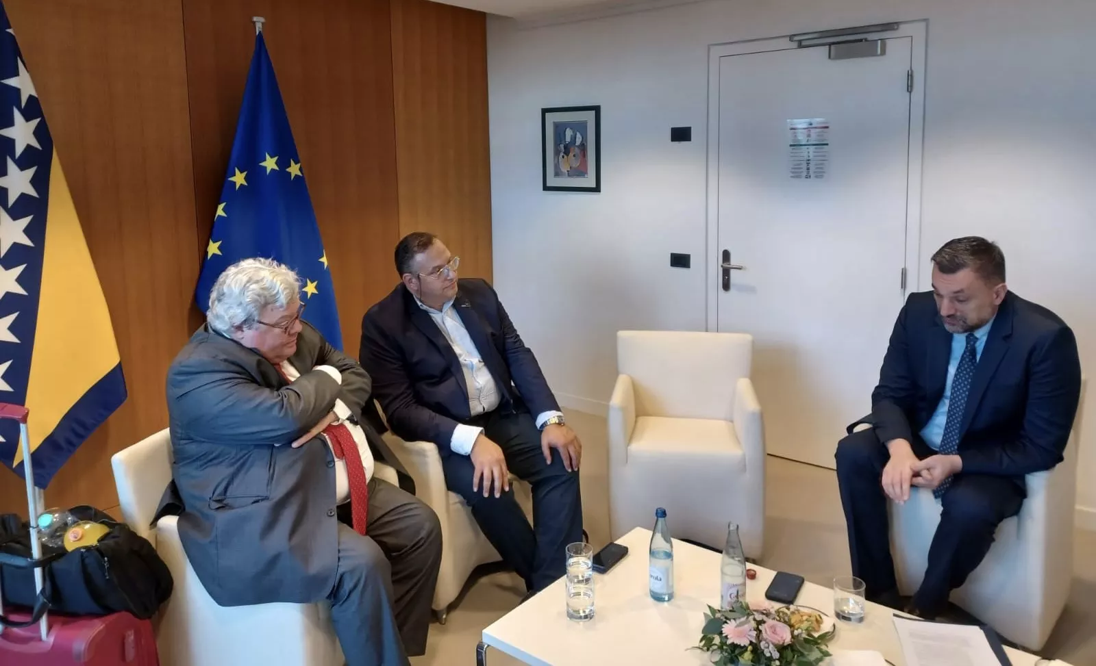 Na marginama plenarnog zasjedanja Evropskog parlamenta u Strazburu ministar vanjskih poslova BiH Elmedin Konaković se danas sreo sa zastupnicima u Evropskom parlamentu Romeom Franzom, predsjedavajućim Delegacije Evropskog parlamenta za BiH, te