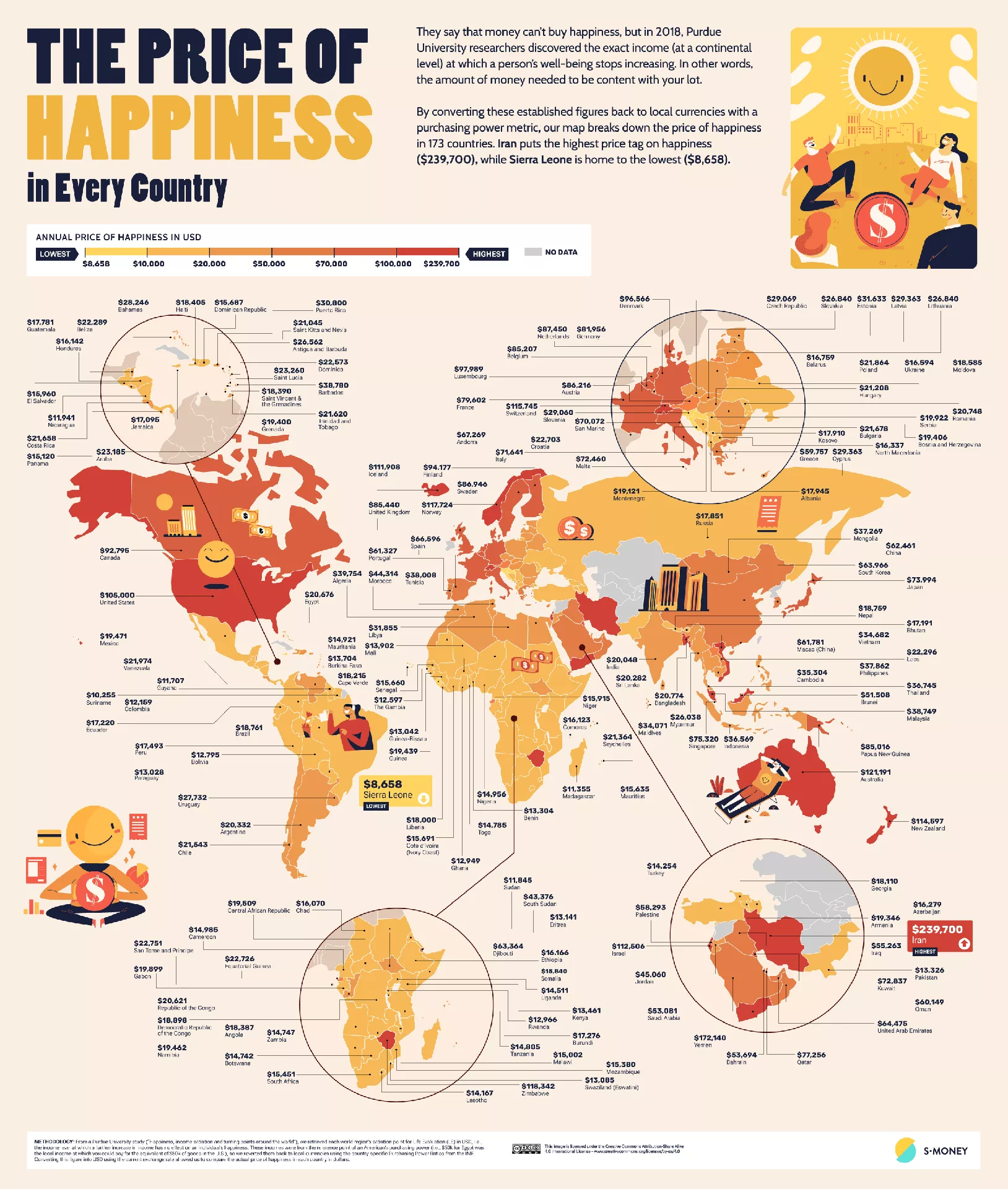 Istraživači su proučavali 173 zemlje svijeta, njihove prosječne plate i cijene namirnica u lokalnim trgovinama kako bi otkrili koji je to iznos prihoda pri kojem daljnje povećanje plate nema utjecaja na sreću pojedinca.