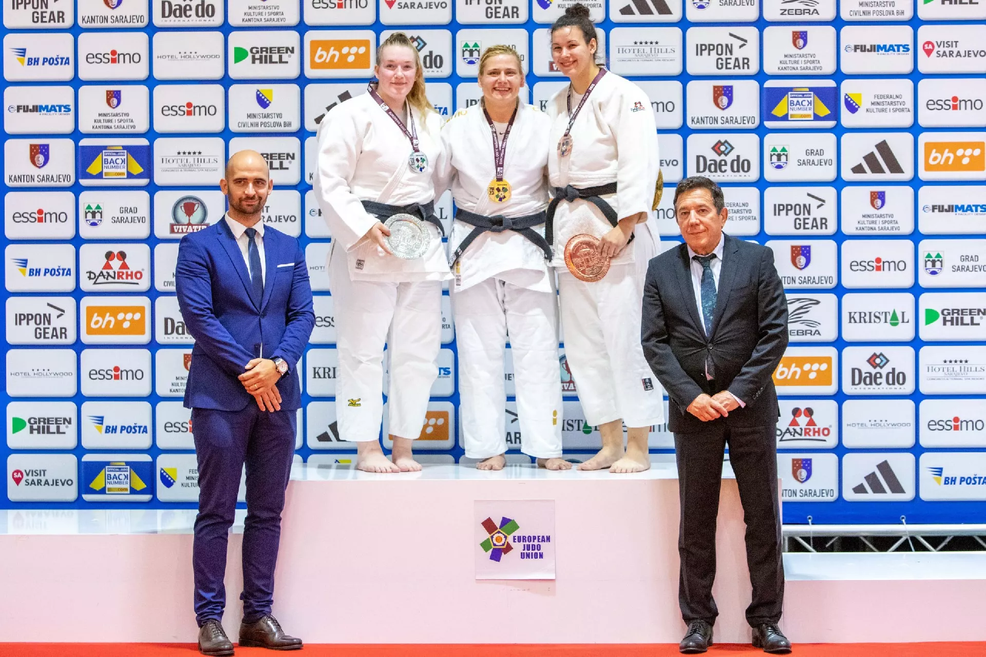 (Patria) - Drugi takmičarski dan trećeg European Judo Open u tehničkoj organizaciji Judo saveza Bosne u Hercegovine bio je izuzetno uspješan za najbolje judoke naše zemlje. Zlatnim medaljama okitili su se Larisa Cerić (+78 kg) i Nikola Pljevaljčić (-100 kg). Srebra su osvojili Aleksandra Samardžić (-70 kg) i Toni Miletić (-90 kg), dok je Sara Marić (+78 kg) slavila u meču za bronzano odličje.