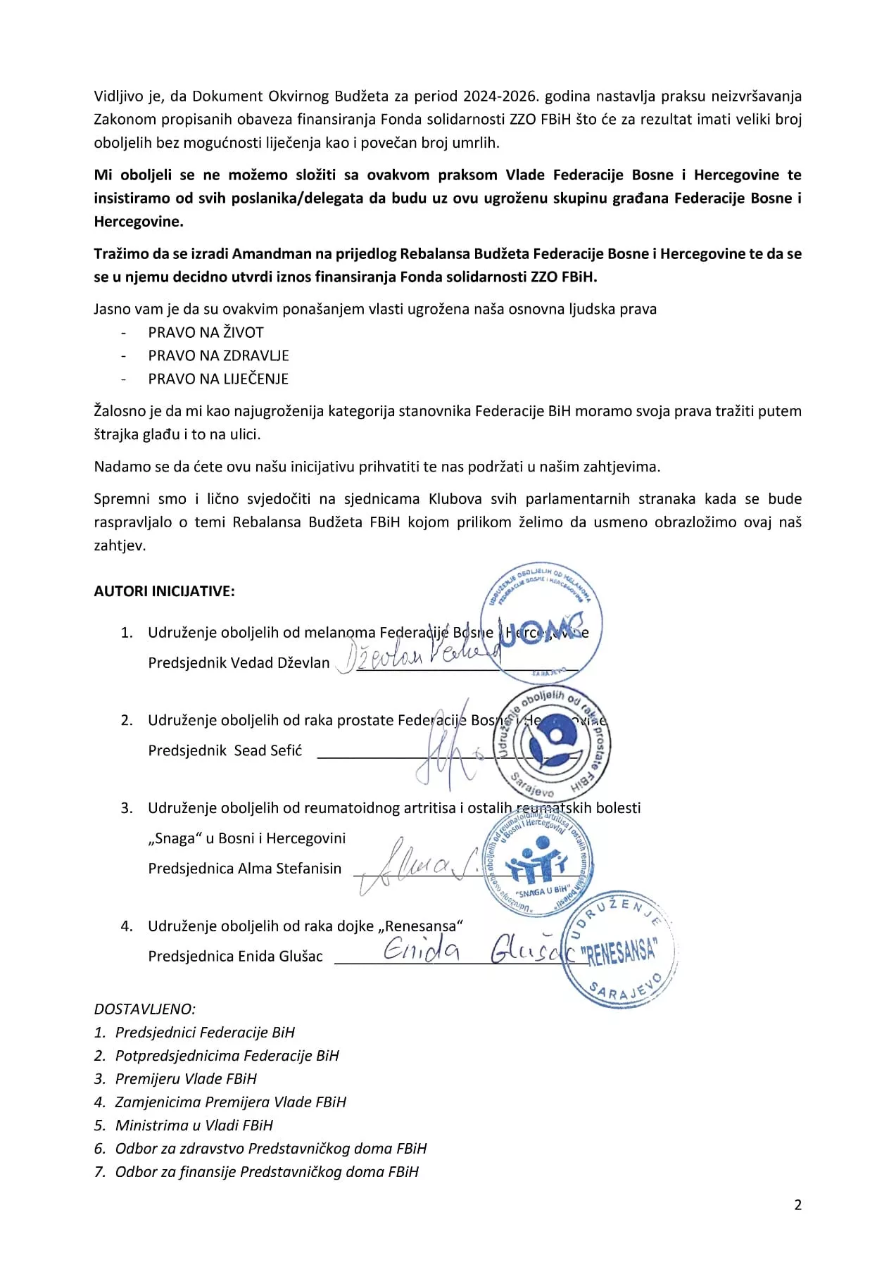 Zahtjev koji su udruženja uputila Parlamentu FBiH - 2. dio (Foto: Facebook)