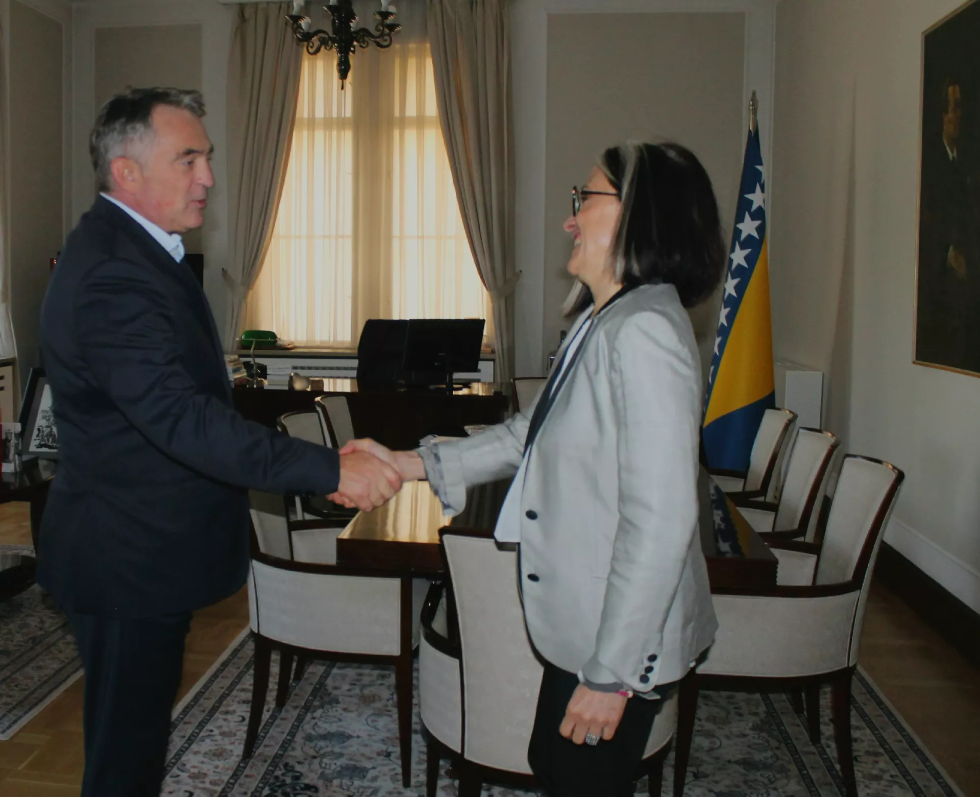 (Patria) - Predsjedavajući Predsjedništva BiH Željko Komšić primio ambasadoricu Kraljevine Španije u BiH i ambasadora Narodne Republike Kine u BiH.