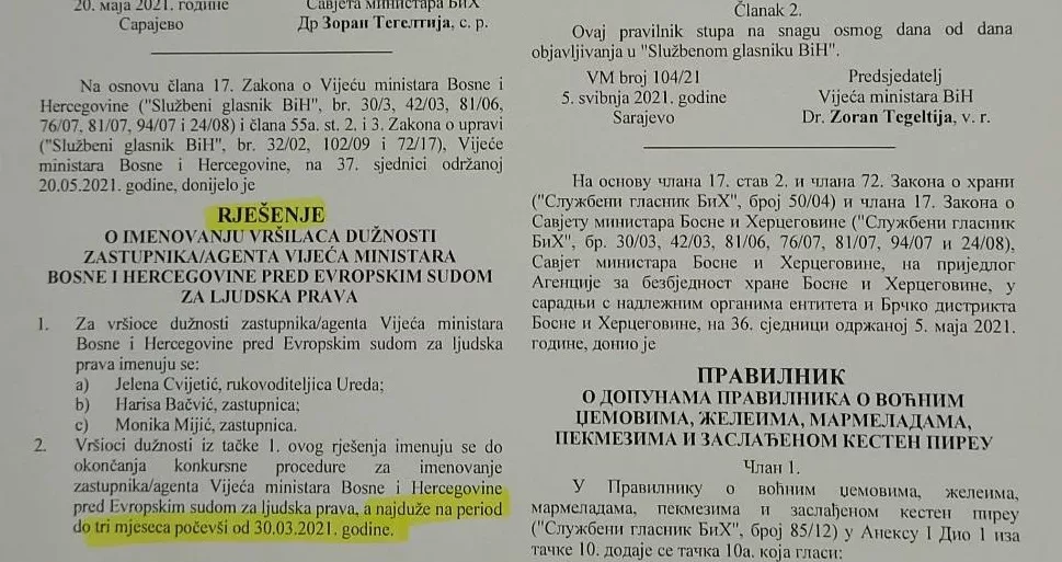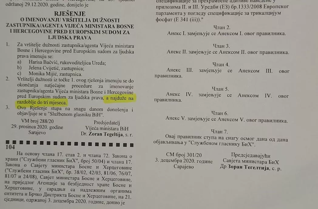 Zastupnici/agenti Vijeća ministara Bosne i Hercegovine pred Evropskim sudom za ljudska prava podnijeli su zahtjev Evropskom sudu za preispitivanje presude u predmetu „Kovačević“. Zahtjev za preispitivanje (žalba) potpisale su dvije bh. agentice – Monika Mijić i Jelena Cvijetić.
