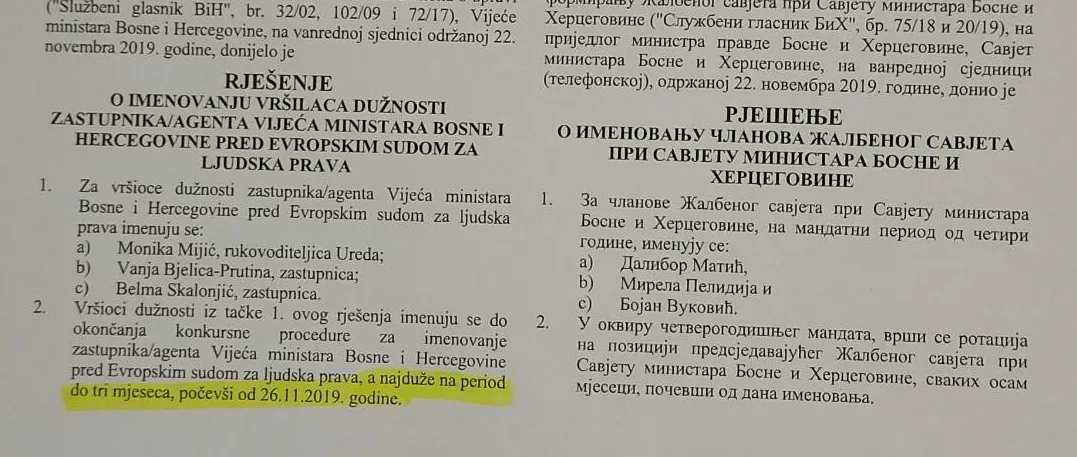 Također, ostaje nejasno kako je Monika Mijić mogla biti treći put zaredom imenovana, kada je zakonom jasno utvrđeno da je trajanje v.d. statusa tri mjeseca sa maksimalno jednim produženjem.