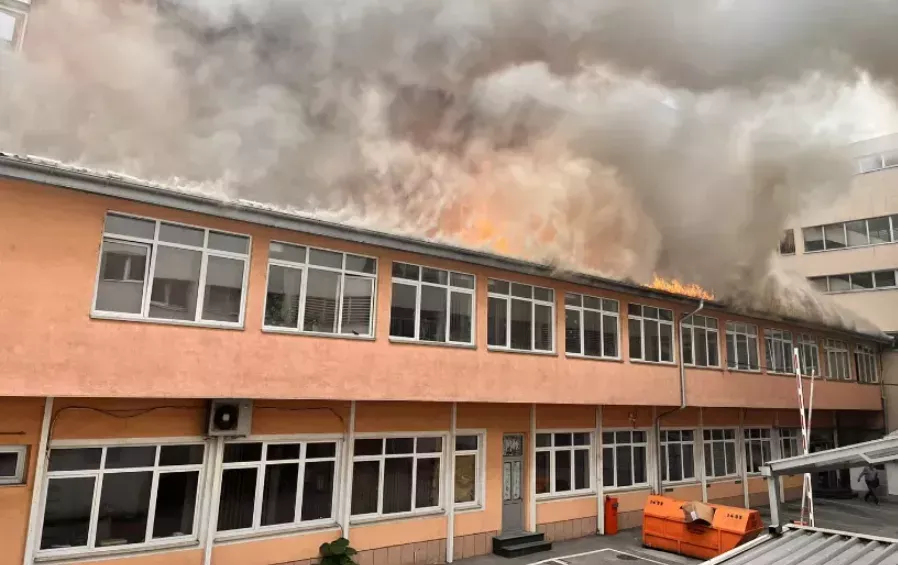 - Na prvom spratu preduzeća "Elektrokrajina", koji je naslonjen na hotel "Bosna", izbio je požar.