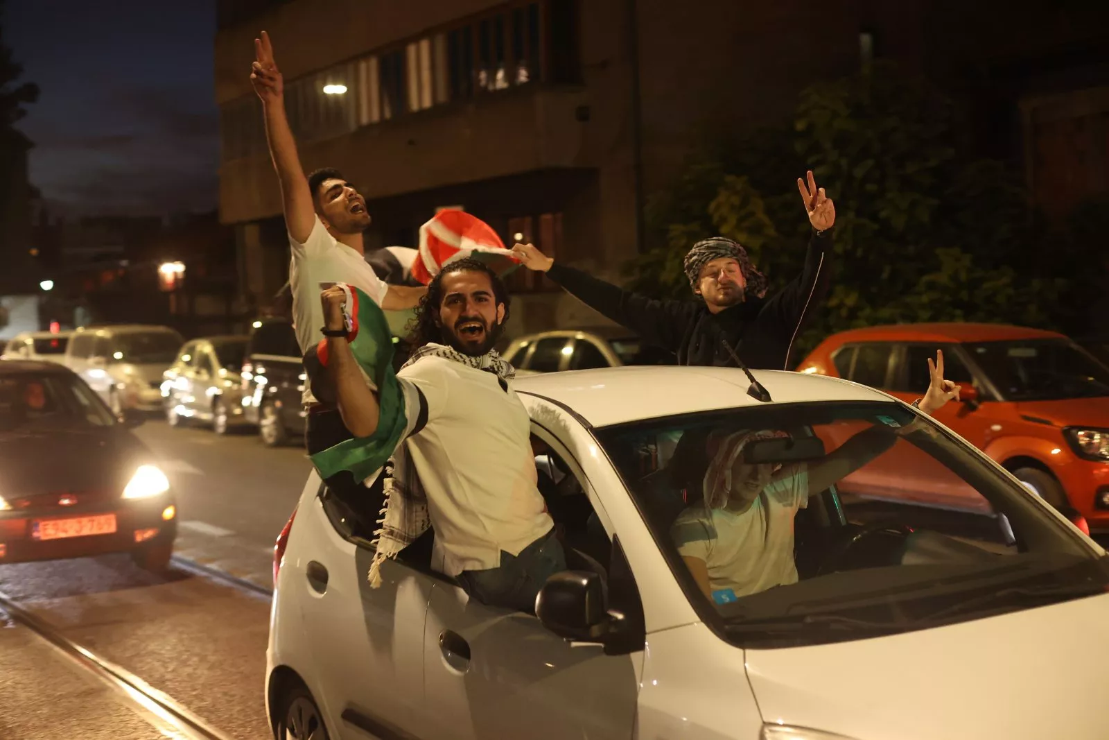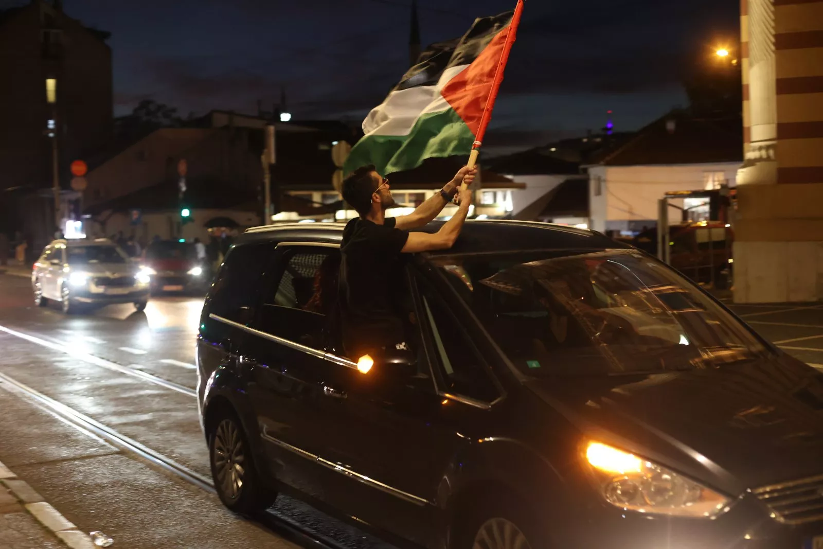Nakon kratkog zadržavanja na Stupu okupljeni građani vozilima su se, s istaknutim palestinskim zastavama, uputili u koloni ka sarajevskoj Vijećnici.