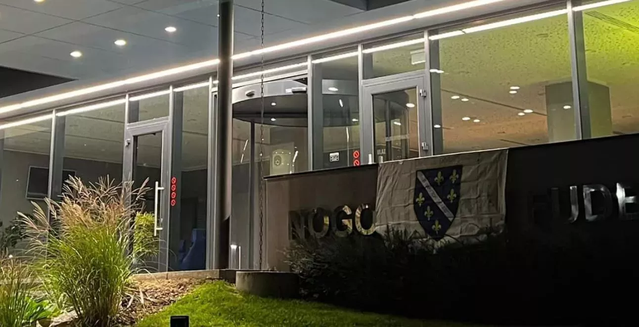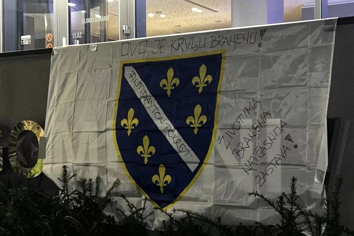 (Patria) - Na zgradu Fudbalskog saveza BiH u Sarajevu tokom protekle noći okačena je velika zastava s ljiljanima.