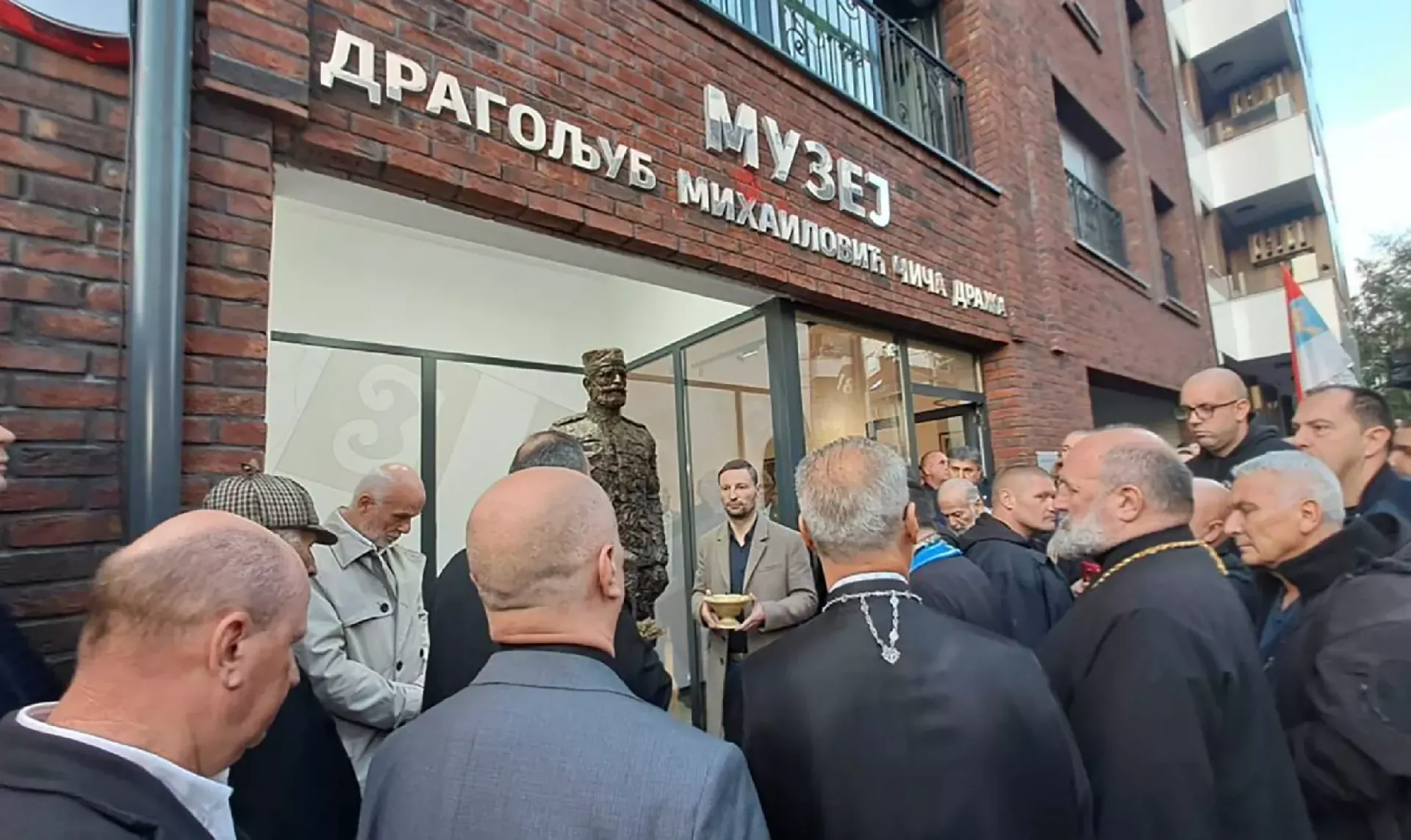 (Patria) - Veliki broj građana, koji pjevaju četničke pjesme, okupio se danas u beogradskoj Bregalničkoj ulici na otvaranju muzeja i spomenika četničkom vođi i ratnom zločincu Dragoljubu Draži Mihailoviću.
