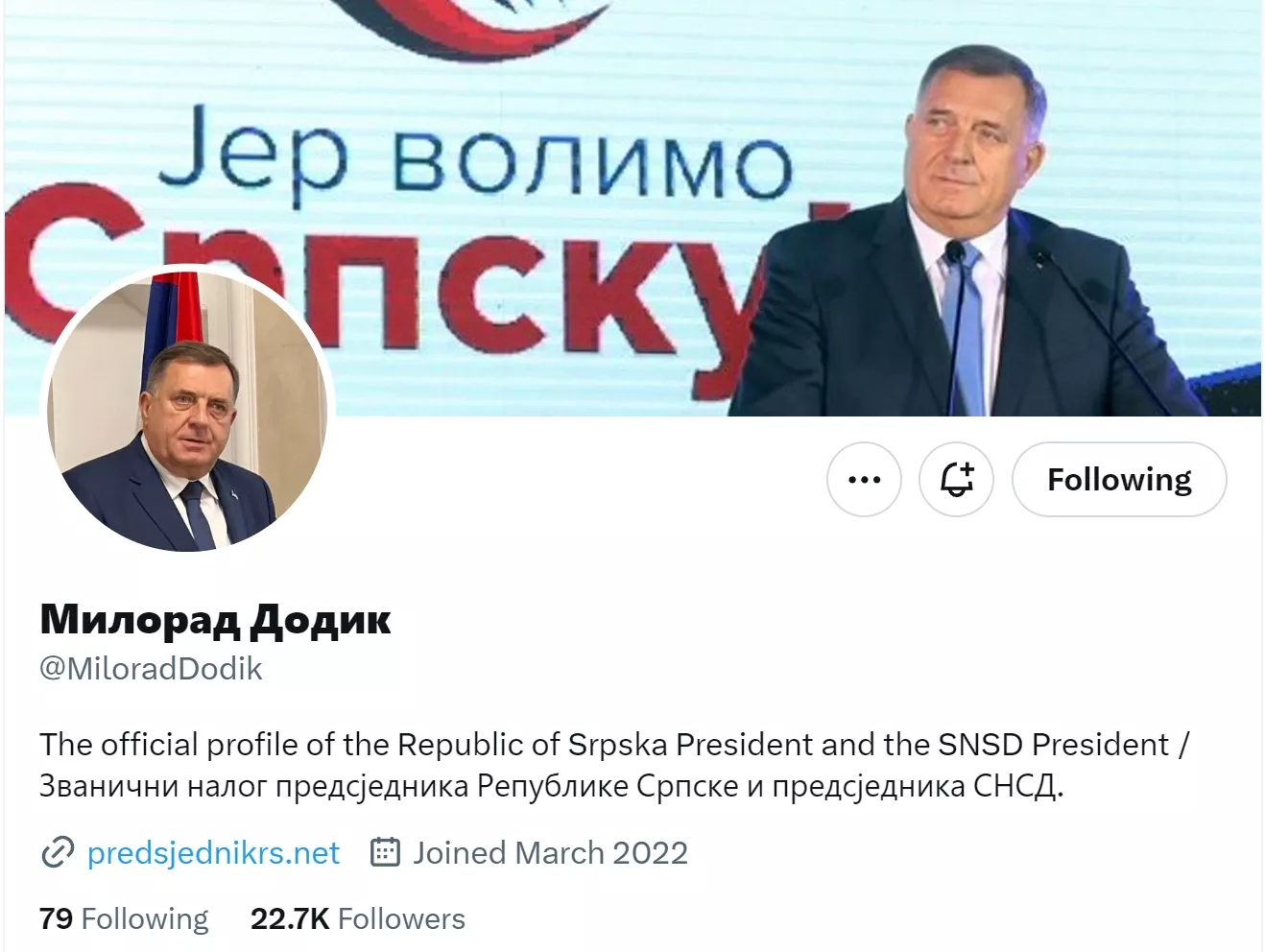 (Patria) - Društvena mreža YouTube ugasila je zvanični kanal predsjednika Rs-a Milorada Dodika, dok mu je Twitter ukinuo plavu kvačicu kao oznaku autentičnosti za njegov profil.