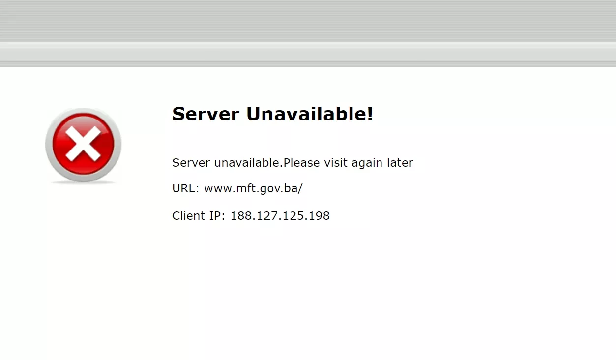 Nešto drugačije je s Ministarstvom finansija i trezora Bosne i Hercegovine, gdje sve korisnike koji mu probaju pristupiti putem interneta dočeka poruka: "Server Unavailable!".