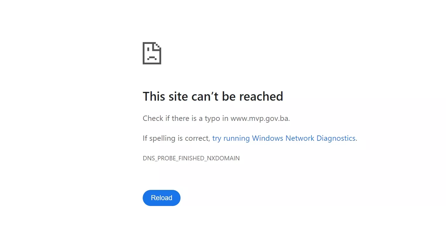 No, bilo da probate pristupiti stranici Vijeća ministara BiH ili nekom od državnih ministarstava, dobit ćete istu poruku: "This site can’t be reached".