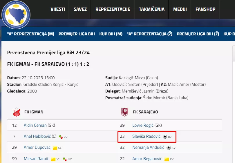 Fudbalski savez BiH zvanično je gol pripisao lijevom beku Sarajeva Slaviši Radoviću, koji je šutnuo loptu u duelu s pomenutim Buturovićem, nakon ubačaja iz kornera, a ona je završila u mreži.