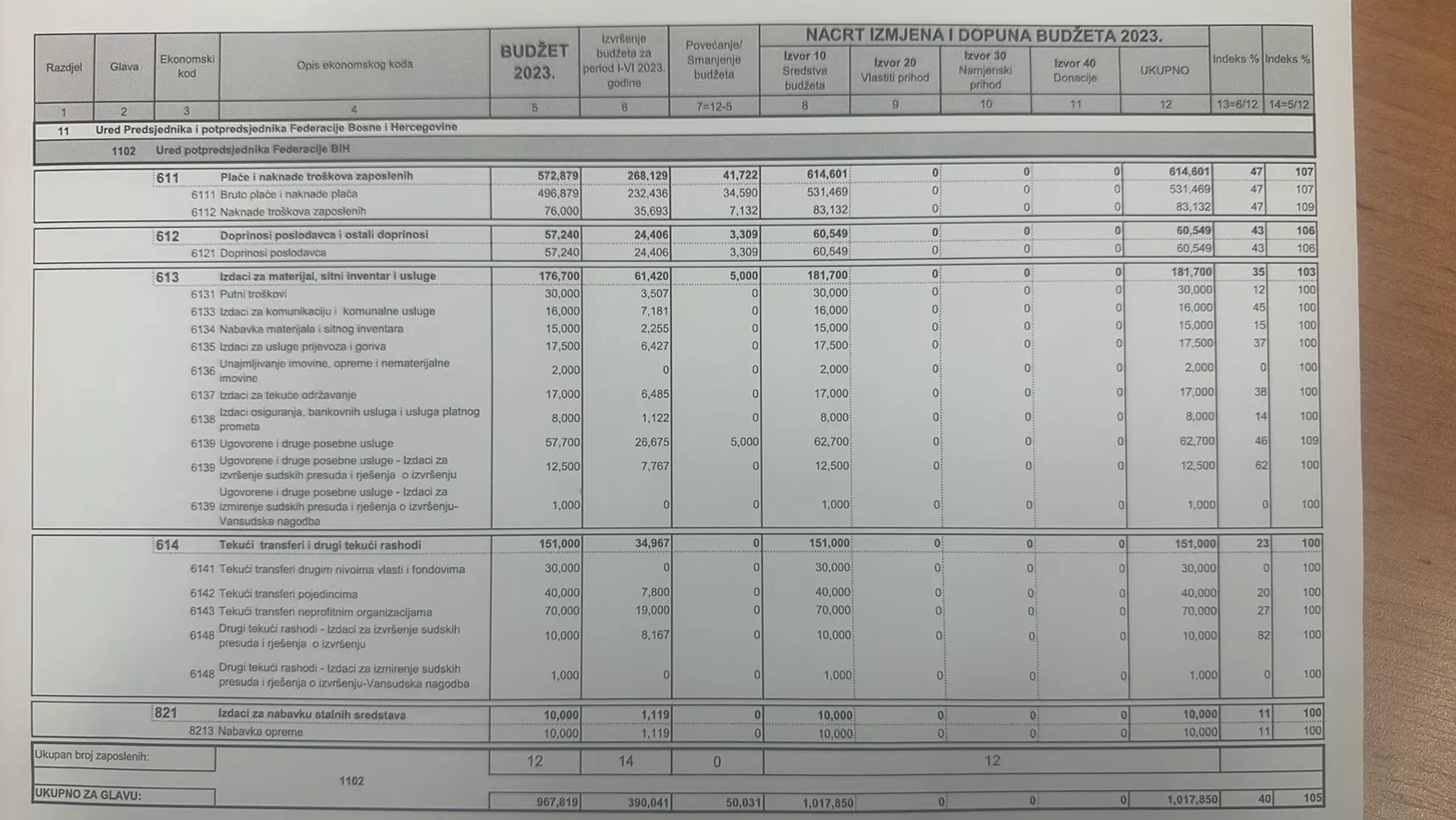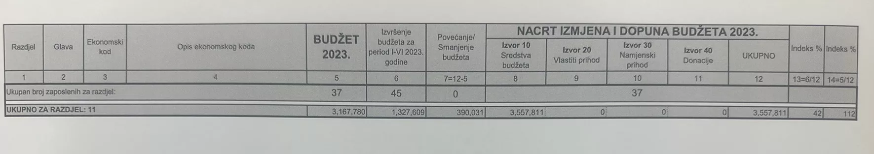 Vidljivo je da su u Budžetu za 2023. godinu predviđena sredstva za 37 uposlenih, dok u Izvršenju budžeta za period od januara do juna 2023. godine stoji da je isplata izvršena prema 45 osoba, što znači da je osam novozaposlenih.