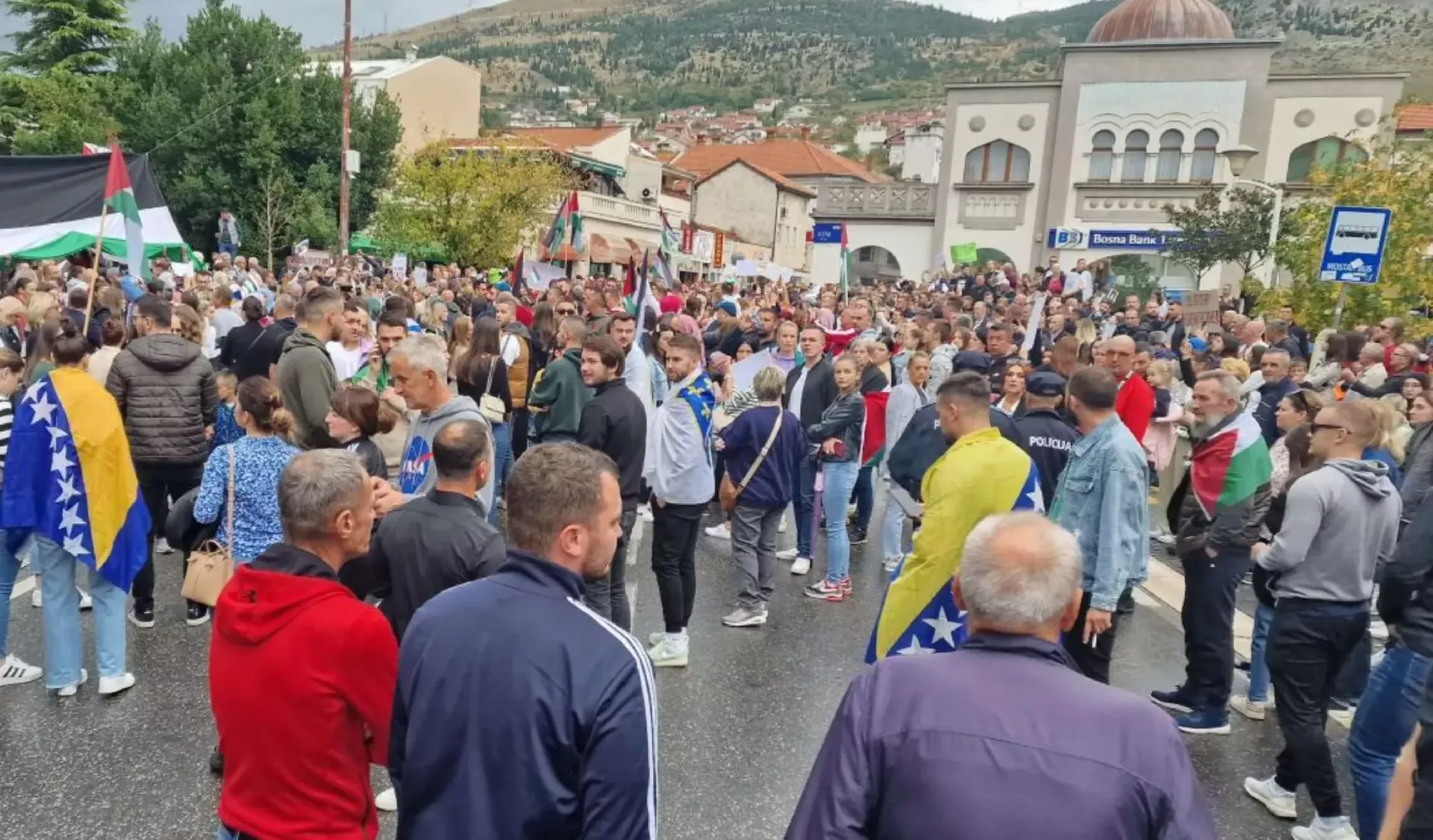 (Patria) - Iako su organizatori otkazali održavanje skupa, a Grad Mostar odbio dati saglasnost za bilo kakvo javno isticanje podrške i Izraelu i Palestini, na Trgu Musala okupile su se hiljade građana Mostara s transparentima i zastavama Palestine kako bi pružili podršku palestinskom narodu.