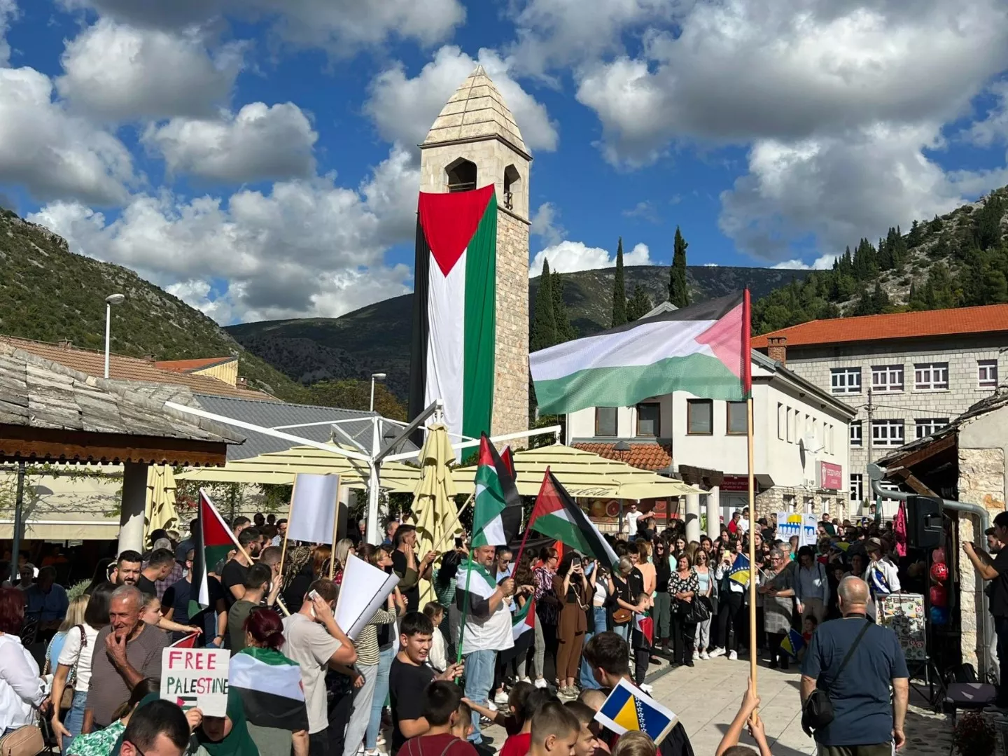 Skup je počeo tačno u podne. Stolac se tako pridružio Sarajevu, Mostaru, Bihaću, Tuzli i drugim bh. gradovima koji su izrazili solidarnosti s narodom Palestine.
