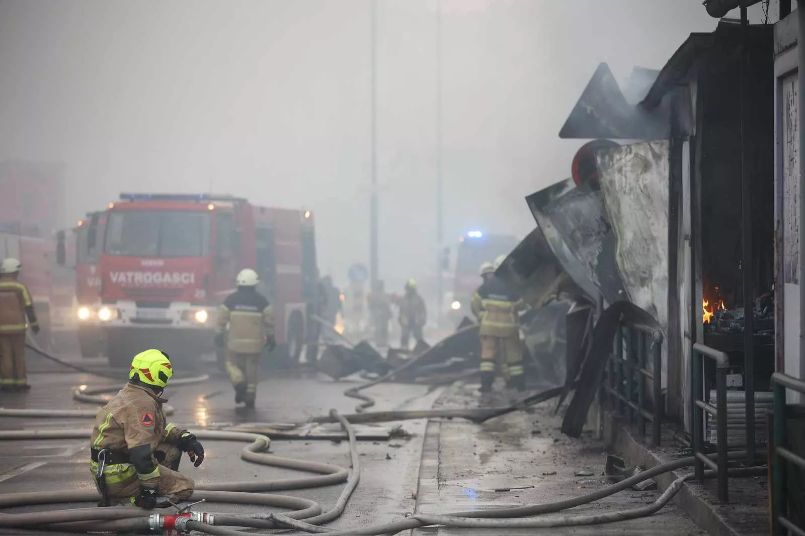 Saobraćaj je bio obustavljen tokom akcije vatrogasaca. Na licu mjesta su brojni prodavači koji su posmatrali kako u plamenu nestaje roba i ono što su stvarali proteklih godina.