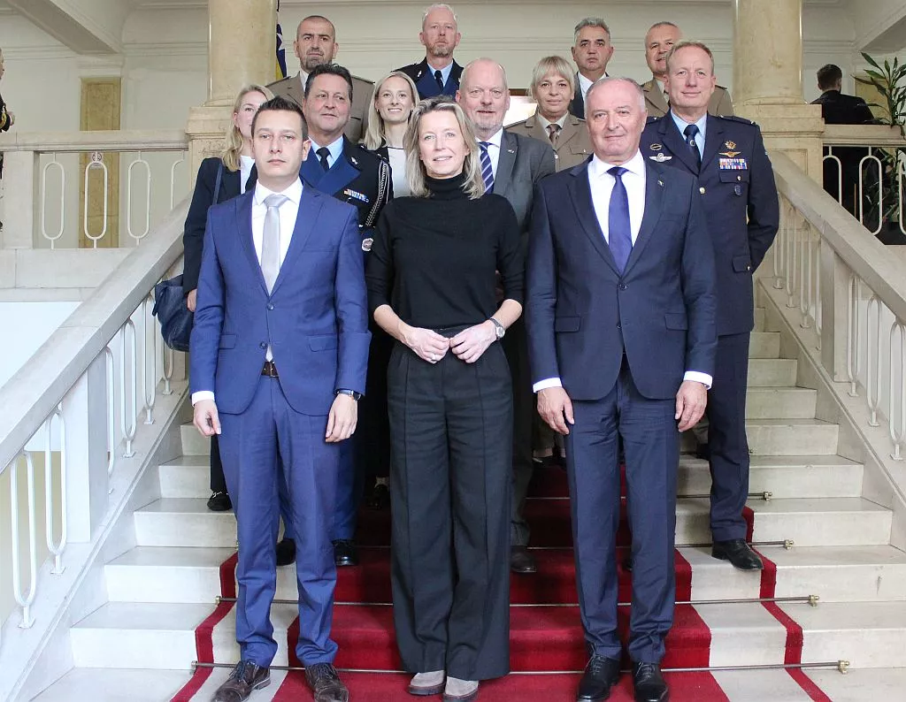 (Patria) - Ministar odbrane Bosne i Hercegovine Zukan Helez, sa zamjenikom ministra Aleksandrom Goganovićem, u ponedjeljak, 06. 11. 2023. godine, u službeni je posjet primio ministricu odbrane Kraljevine Nizozemske Nj.E. Kajsu Ollongren.