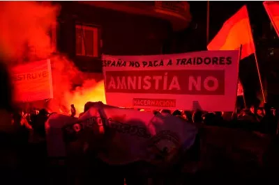 (Patria) - Hiljade krajnje desničarskih demonstranata okupilo se u utorak ispred sjedišta španskog premijera Pedra Sancheza protiv njegovog prijedloga zakona kojim se daje amnestija katalonskim separatistima, javio je AFP.