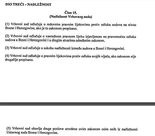 Tako je Denis Zvizdić (NIP) predložio Prijedlog zakona o Vrhovnom sudu Bosne i Hercegovine, sa zahtjevom za razmatranje po hitnom postupku. U obrazloženju je navedeno da će sjedište Vrhovnog suda BiH biti u Sarajevu i da je to kasacioni sud.
