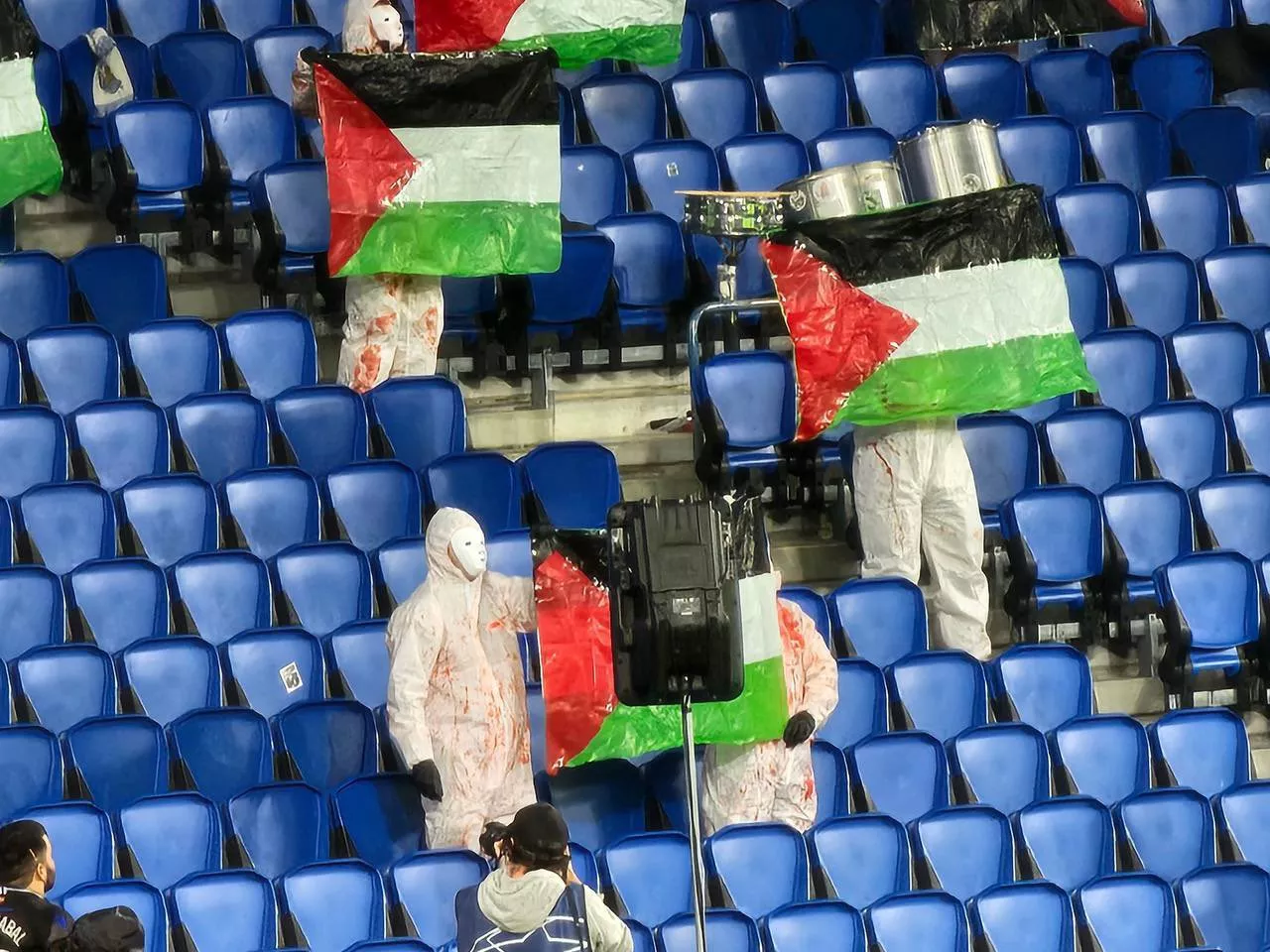 Nekolicina fanova tima iz Baskije pojavila se na tribinama i izvela performans s bijelim kombinezonima, na kojima su bili i tragovi crvene boje, što asocira na krv.