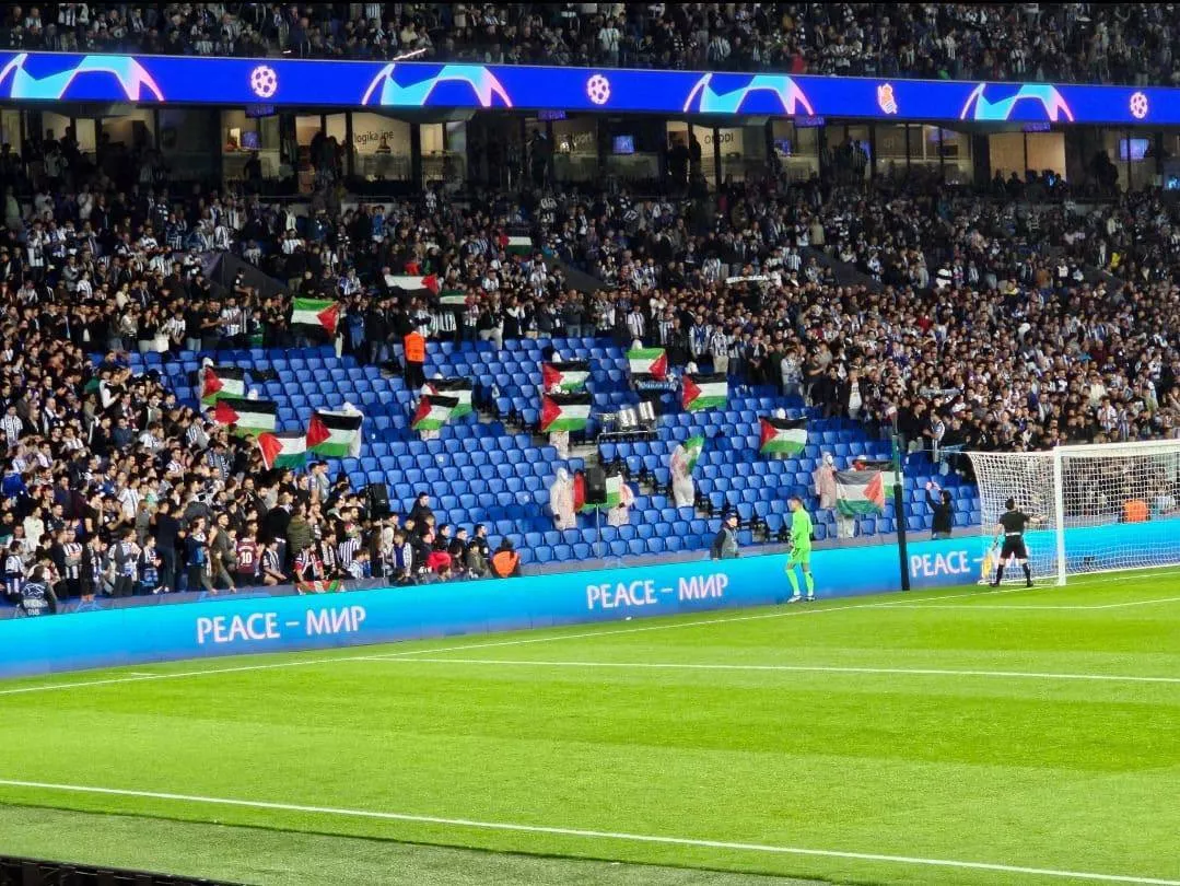 (Patria) - Navijači španskog Real Sociedada izveli su rijetko viđen performans u duelu Lige prvaka protiv Benfice sredinom prošle sedmice i na neobičan način podržali Palestinu i narod u Gazi koji je u nemilosti Izraela i njihove vojske.