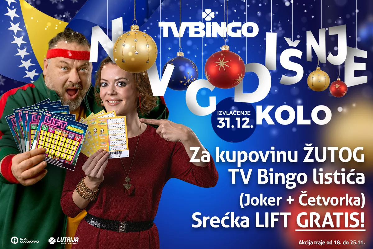 - Svi igrači koji se odluče da na prodajnim mjestima Lutrije BiH kupe svoj žuti TV Bingo listić sa odigranom minimalno jednom kombinacijom igara Bingo Joker i Četvorka, u period od 18. do 25. novembra, će na poklon dobiti srećku Lift.