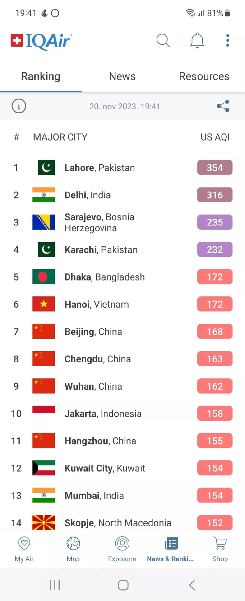 Prema podacima IQAir, Sarajevo je treći najzagađeniji grad na svijetu. Na prvom mjestu je Lahore u Pakistanu i Delhi u Indiji na drugom mjestu.