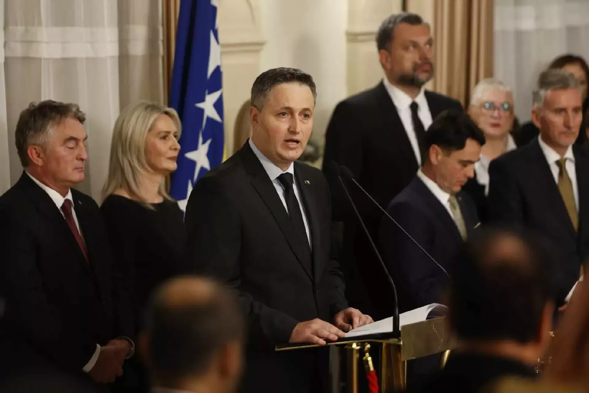 (Patria) - Predsjedavajući i član Predsjedništva BiH Željko Komšić i Denis Bećirović organizovali su večeras u zgradi kolektivnog šefa države u Sarajevu svečani prijem povodom 25. novembra, Dana državnosti BiH.
