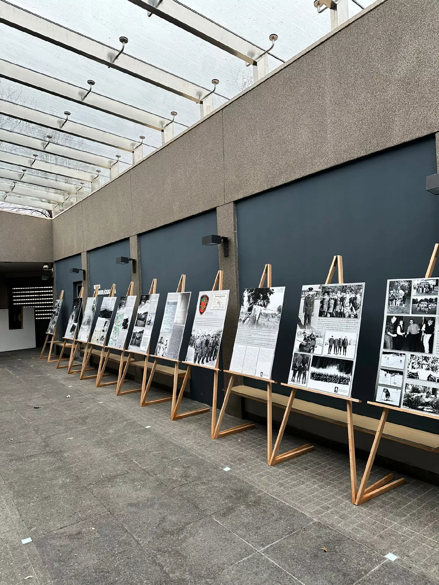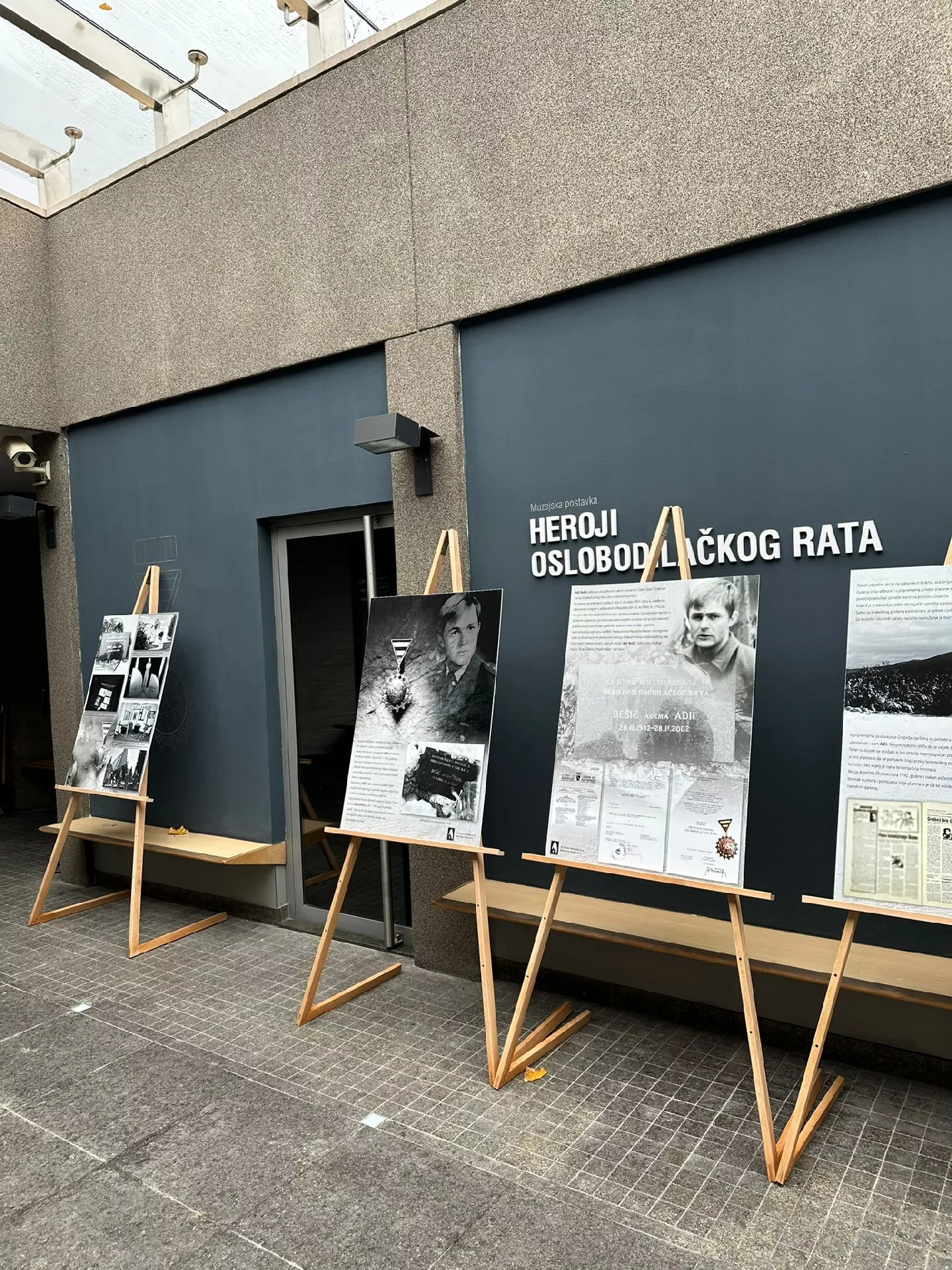 Središnji dio izložbe čini 16 panela s fotografijama, prikazima dokumenata i tekstovima koji detaljno oslikavaju život i ratni put Adila Bešića.