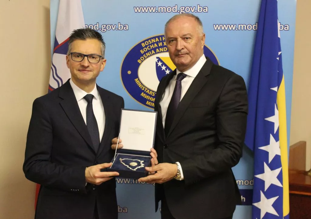 (Patria) - Ministar odbrane Bosne i Hercegovine Zukan Helez, sa zamjenikom ministra odbrane BiH Aleksandrom Goganovićem, primio je u posjetu ministra odbrane Republike Slovenije Nj.E. Marjana Šareca.