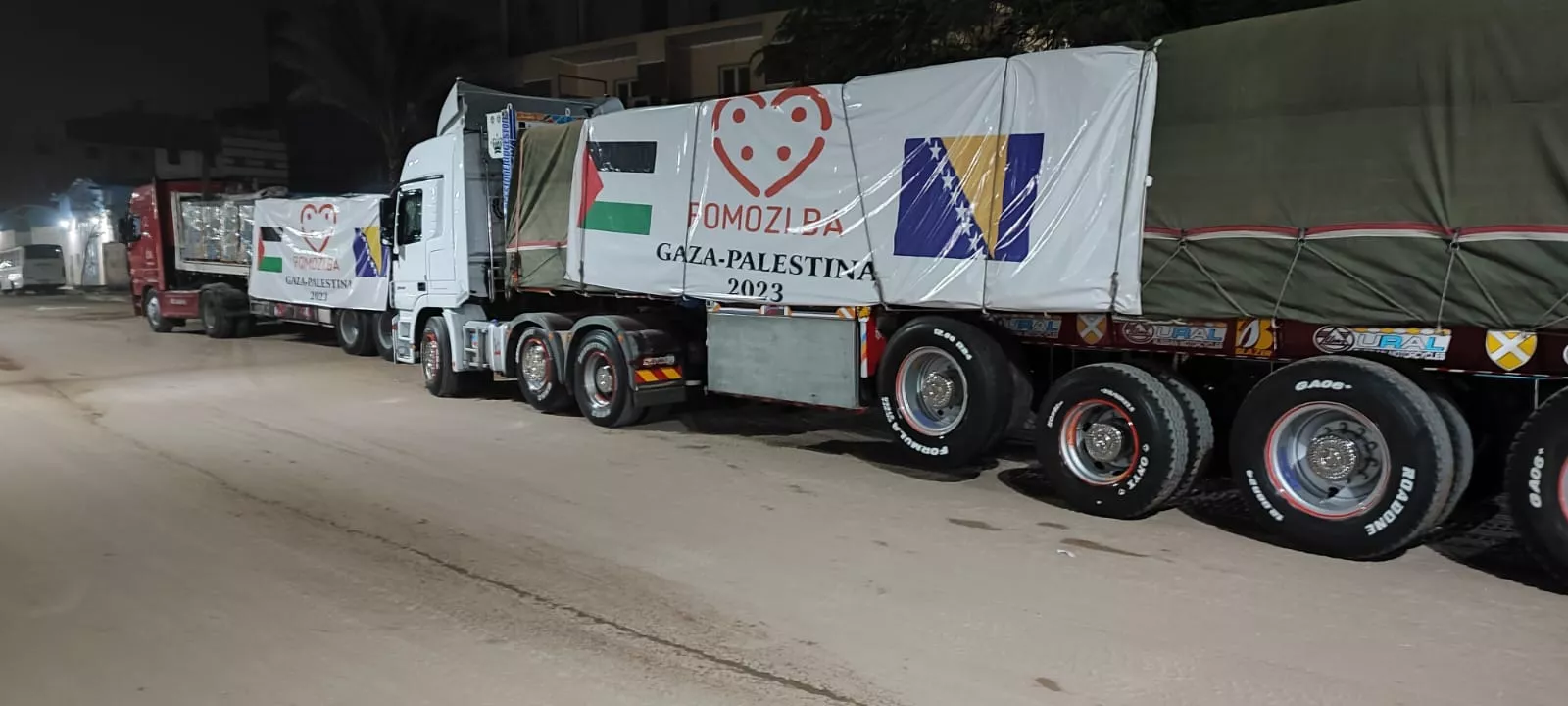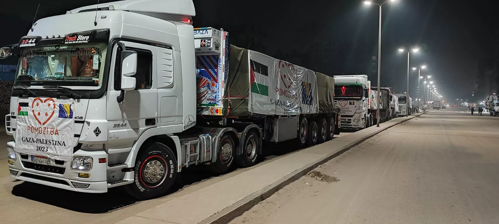 (Patria) - Prvi dio od ukupno 10 šlepera sa hranom i vodom sinoć je iz Kaira krenuo prema granici sa Palestinom.