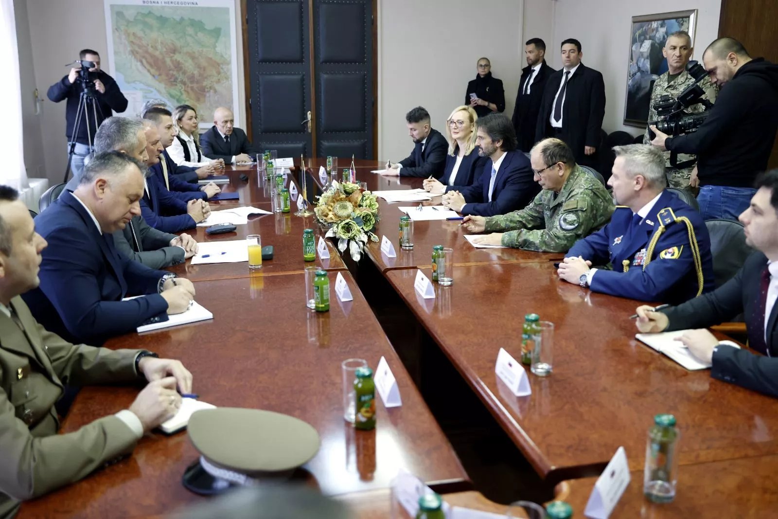 Sastanku su prisustvovali i pomoćnici ministra odbrane BiH Zoran Šajinović i Dženan Redžo, zamjenik načelnika glavnog štaba Oružanih snaga Republike Slovačke, general-pukovnik Ľubomír Svoboda, komandant Brigade za taktičku podršku OS BiH, brigadir Jasmin Čajić, vojni izaslanik Slovačke Republike u BiH, pukovnik Milan Skrutek Mindek, šefovi kabineta ministra odbrane i zamjenika ministra odbrane BiH, te ostali saradnici.