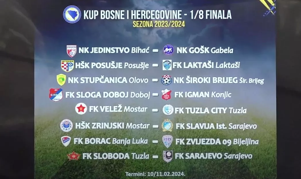 (Patria) - U prostorijama Fudbalskog saveza BiH danas je održano žrijebanje osmine finala Kupa BiH.