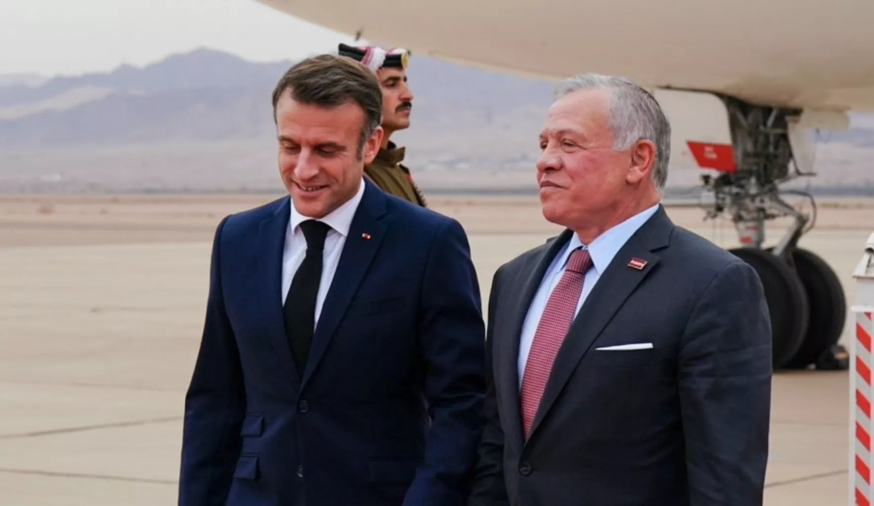 Francuskog predsjednika dočekao je jordanski kralj po slijetanju u lučki grad Akabu na Crvenom moru. Ovo je drugi susret dvojice lidera od početka rata između Izraela i Hamasa. Macron je krajem oktobra bio na turneji po Bliskom istoku u znak solidarnosti sa Izraelom.