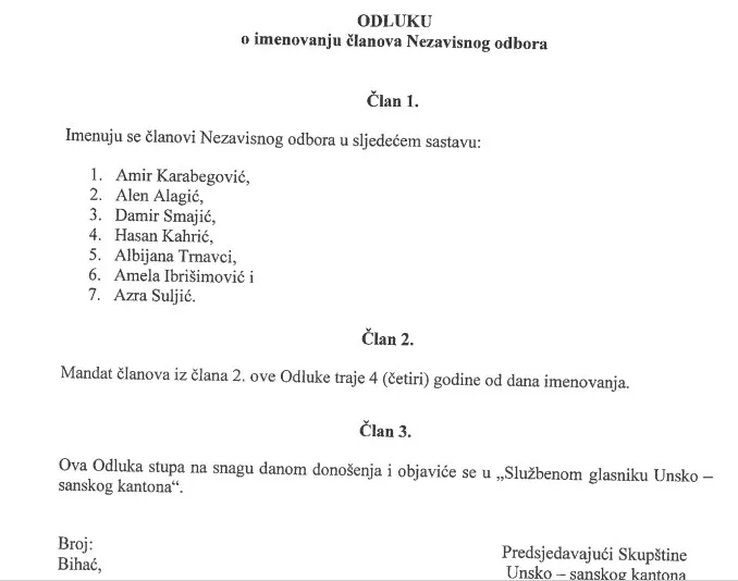 Odmah potom na prvoj narednoj sjednici naći će se novi sastav Nezavisnog odbora koji doslovce vrvi od sadašnjih i bivših kadrova SDA. Hasan Kahrić je bivši ministar SDA, Albijana Trnavci bila u prijedlozima za liste proteklih izbora, dok je najbolje rangirani Amir Karabegović bio kandidat na listi ispred SDA na posljednjim izborima.