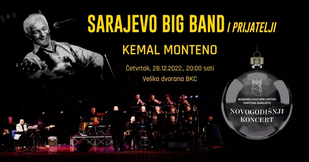 (Patria) - Tradicionalni Novogodišnji koncert "Sarajevo Big Band i prijatelji" ove godine posvećen je stvaralaštvu Kemala Montena, a bit će održan 28. decembra u velikoj dvorani sarajevskog BKC-a, sa početkom u 20 sati.
