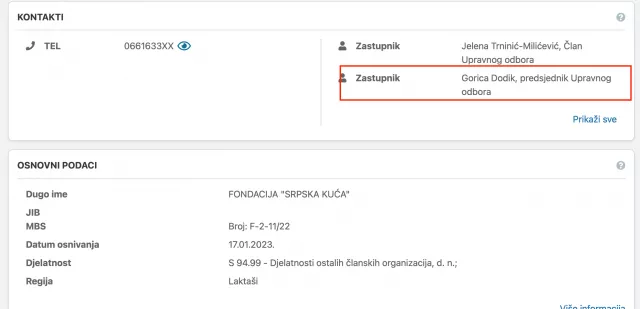 Fondacija 'Srpska kuća' osnovana je u januaru 2023. godine u Laktašima. Gorica Dodik je predsjednica Upravnog odbora, a Jelena Trninić Milićević član Upravnog odbora koja je i savjetnica ministra trgovine i turizma u Vladi Rs Denisa Šulića.