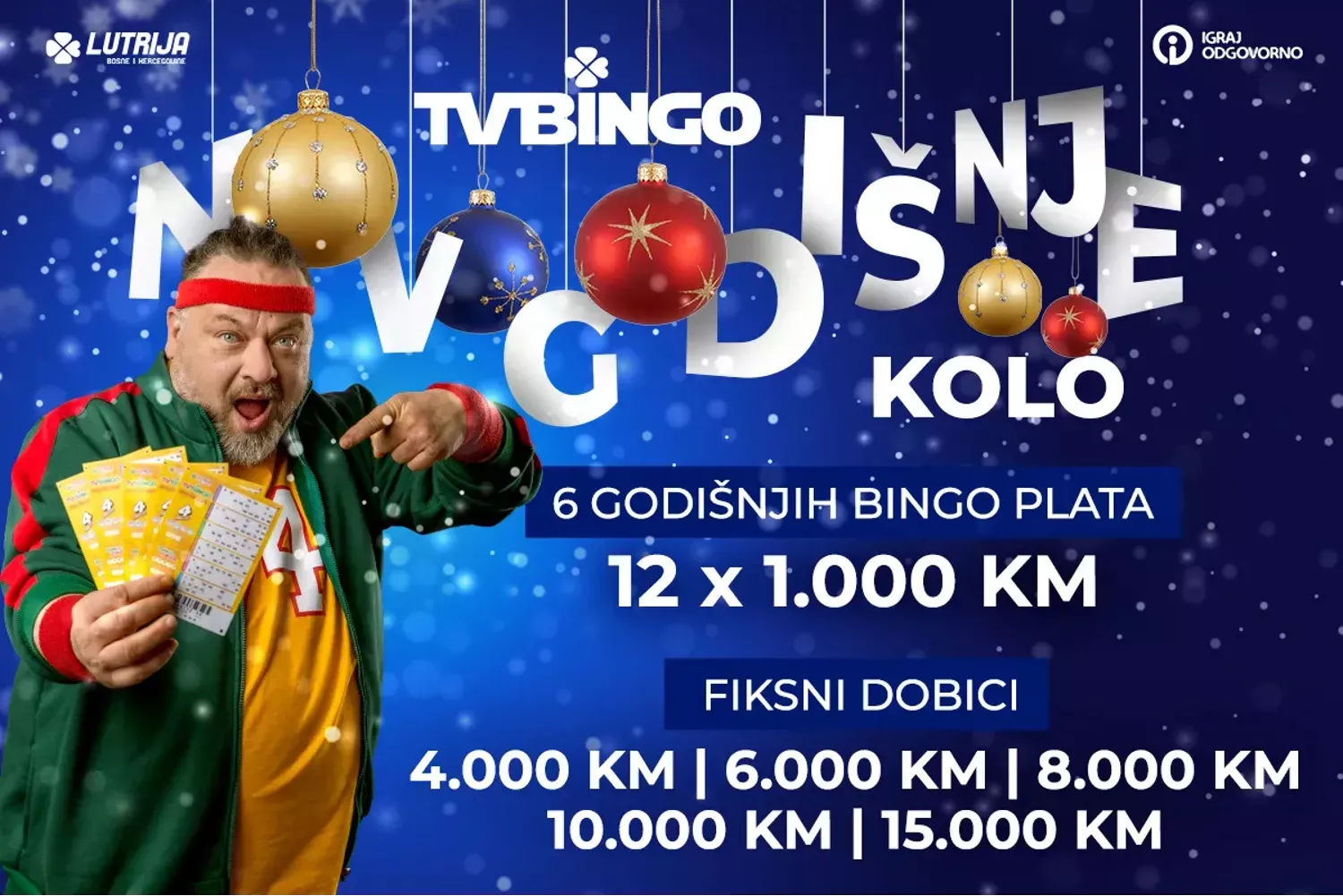 Ljubitelji igre TV Bingo u Novogodišnjem vanrednom kolu ove igre imat će mogućnost da osvoje dodatne novčane dobitke: 1 x 15.000,00 KM, 6 dobitaka „Godišnja TV Bingo plata“ od po 12.000,00 KM, te dobitke od 10.000,00 KM, 8.000,00 KM, 6.000,00 KM i 4.000,00 KM.