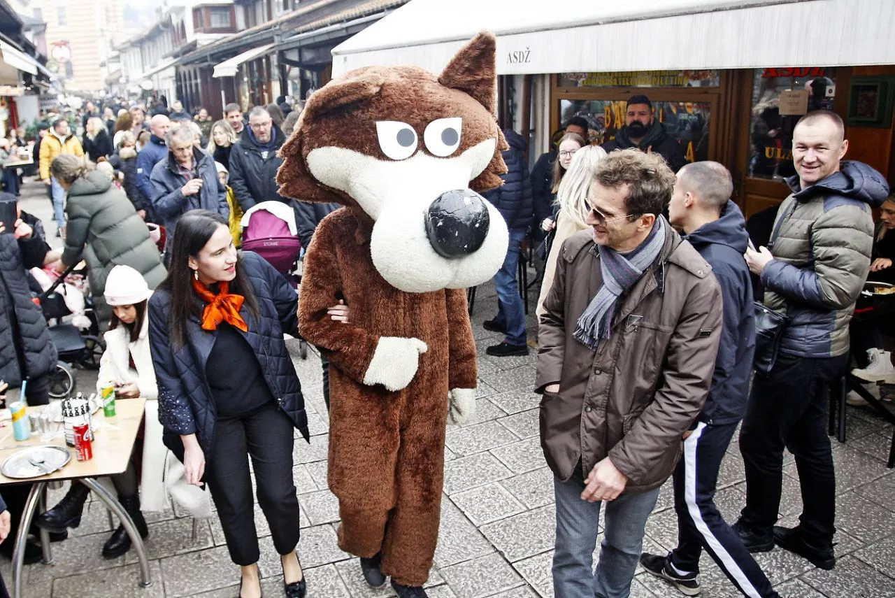 prošetao je popularni Vučko, maskota Zimskih olimpijskih igara održanih u Sarajevu